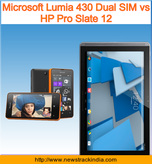 Microsoft Lumia 430 Dual SIM is powered with Dual-core 1.2 GHz Cortex-A7 processor. Whereas HP Pro Slate 12 comes with Quad-core 2.3 GHz processor.