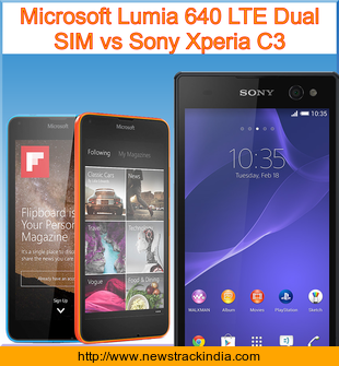 The mobile device Microsoft Lumia 640 LTE Dual SIM runs on Microsoft Windows Phone 8.1 with Lumia Denim. Whereas Sony Xperia C3 runs on Android OS, v4.4.2 (KitKat).