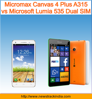 Main Features comparison of the devices Micromax Canvas 4 Plus A315 and Microsoft Lumia 535 Dual SIM.