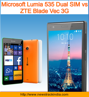 Main Features comparison of the devices Microsoft Lumia 535 Dual SIM and ZTE Blade Vec 3G.