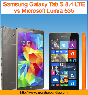 Samsung Galaxy Tab S 8.4 LTE is powered with Quad-core 2.3 GHz Krait 400 (S800) Quad-core 1.9GHz Cortex-A15 & quad-core 1.3 GHz Cortex-A7 (Exynos 5420) processor. Whereas Microsoft Lumia 535 comes with Quad-core 1.2 GHz Cortex-A7 processor.