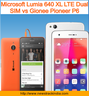 The mobile device Microsoft Lumia 640 XL LTE Dual SIM runs on Microsoft Windows Phone 8.1 with Lumia Denim. Whereas Gionee Pioneer P6 runs on Android OS, v4.4.2 (KitKat).