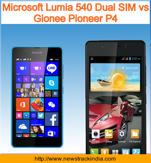 Main Features comparison of the devices Microsoft Lumia 540 Dual SIM and Gionee Pioneer P4.