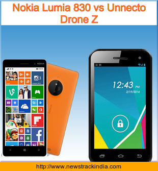 Check Nokia Lumia 830 vs Unnecto Drone Z : Comparison of Features and Specification in detail..