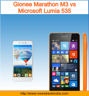 The mobile device Gionee Marathon M3 runs on Android OS, v4.4.2 (KitKat). Whereas Microsoft Lumia 535 runs on Microsoft Windows Phone 8.1.