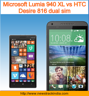 The mobile device Microsoft Lumia 940 XL runs on Microsoft Windows 10. Whereas HTC Desire 816 dual sim runs on Android OS, v4.4.2 (KitKat).