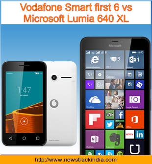 The mobile device Vodafone Smart first 6 runs on Android OS, v4.4.2 (KitKat). Whereas Microsoft Lumia 640 XL runs on Microsoft Windows Phone 8.1 with Lumia Denim.