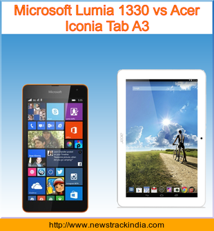 The mobile device Microsoft Lumia 1330 runs on Microsoft Windows Phone 8.1. Whereas Acer Iconia Tab A3 runs on Android OS, v4.4 (KitKat).