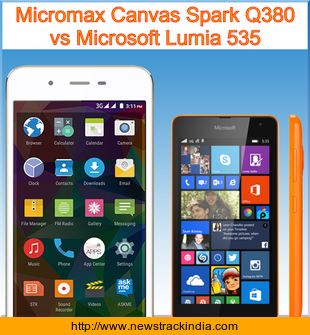 The mobile device Micromax Canvas Spark Q380 runs on Android OS, v5.0 (Lollipop). Whereas Microsoft Lumia 535 runs on Microsoft Windows Phone 8.1.