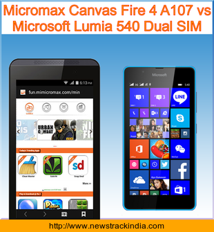Main Features comparison of the devices Micromax Canvas Fire 4 A107 and Microsoft Lumia 540 Dual SIM.