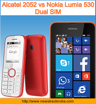 Check Alcatel 2052 vs Nokia Lumia 530 Dual SIM : Comparison of Features and Specification in detail..