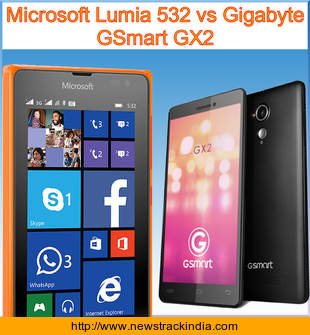 The mobile device Microsoft Lumia 532 runs on Microsoft Windows Phone 8.1. Whereas Gigabyte GSmart GX2 runs on Android OS, v4.4.2 (KitKat).
