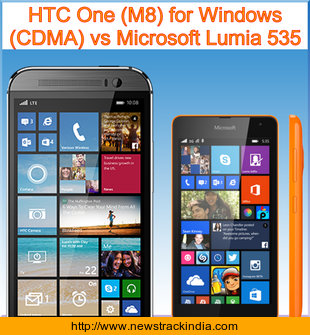 The mobile device HTC One (M8) for Windows (CDMA) runs on Microsoft Windows Phone 8.1.1. Whereas Microsoft Lumia 535 runs on Microsoft Windows Phone 8.1.