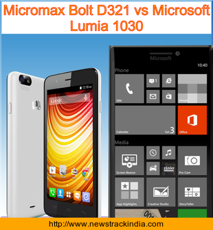 Micromax Bolt D321 is powered with Dual-core 1.3 GHz processor. Whereas Microsoft Lumia 1030 comes with Quad-core processor.