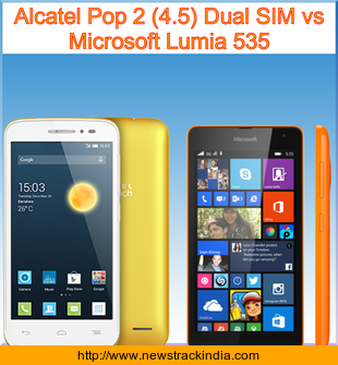 Main Features comparison of the devices Alcatel Pop 2 (4.5) Dual SIM and Microsoft Lumia 535.