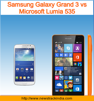 Main Features comparison of the devices Samsung Galaxy Grand 3 and Microsoft Lumia 535.
