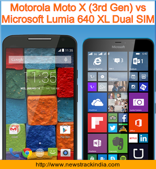 Main Features comparison of the devices Motorola Moto X (3rd Gen) and Microsoft Lumia 640 XL Dual SIM.