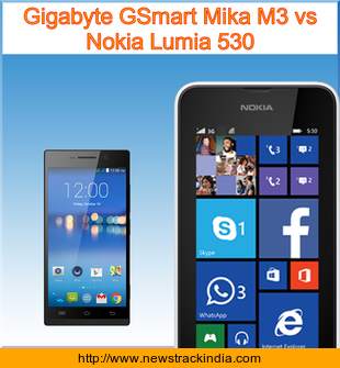 Gigabyte GSmart Mika M3 is powered with Quad-core 1.3 GHz Cortex-A7 processor. Whereas Nokia Lumia 530 comes with Quad-core 1.2 GHz processor.