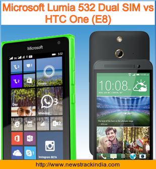 The mobile device Microsoft Lumia 532 Dual SIM runs on Microsoft Windows Phone 8.1. Whereas HTC One (E8) runs on Android OS, v4.4.2 (KitKat).