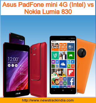 Asus PadFone mini 4G (Intel) is powered with Dual-core 1.6 GHz processor. Whereas Nokia Lumia 830 comes with Quad-core 1.2 GHz Cortex-A7 processor.