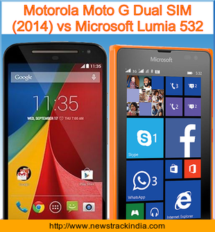 Motorola Moto G Dual SIM (2014) is powered with Quad-core 1.2 GHz Cortex-A7 processor. Whereas Microsoft Lumia 532 comes with Quad-core 1.2 GHz Cortex-A7 processor.