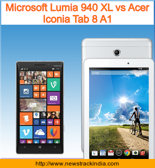 Microsoft Lumia 940 XL is powered with Quad-core 1.5 GHz Cortex-A53 & Quad-core 2 GHz Cortex-A57 processor. Whereas Acer Iconia Tab 8 A1 comes with Quad-core 1.86 GHz processor.