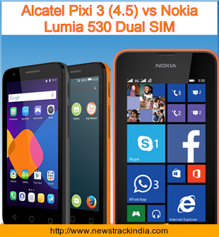 The mobile device Alcatel Pixi 3 (4.5) runs on Android OS, v4.4.2 (KitKat). Whereas Nokia Lumia 530 Dual SIM runs on Microsoft Windows Phone 8.1.