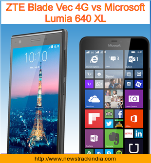 The mobile device ZTE Blade Vec 4G runs on Android OS, v4.4.2 (KitKat). Whereas Microsoft Lumia 640 XL runs on Microsoft Windows Phone 8.1 with Lumia Denim.