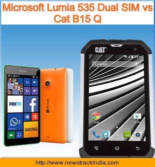 The mobile device Microsoft Lumia 535 Dual SIM runs on Microsoft Windows Phone 8.1. Whereas Cat B15 Q runs on Android OS, v4.4.2 (KitKat).