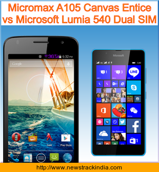 Main Features comparison of the devices Micromax A105 Canvas Entice and Microsoft Lumia 540 Dual SIM.