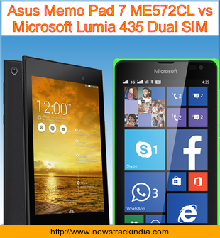 Main Features comparison of the devices Asus Memo Pad 7 ME572CL and Microsoft Lumia 435 Dual SIM.