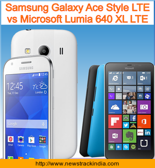 The mobile device Samsung Galaxy Ace Style LTE runs on Android OS, v4.4.2 (KitKat). Whereas Microsoft Lumia 640 XL LTE runs on Microsoft Windows Phone 8.1 with Lumia Denim.