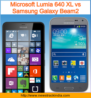 Main Features comparison of the devices Microsoft Lumia 640 XL and Samsung Galaxy Beam2.
