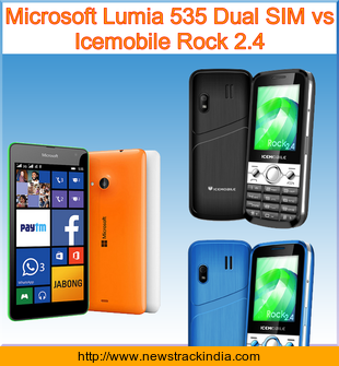 The mobile device Microsoft Lumia 535 Dual SIM runs on Microsoft Windows Phone 8.1. Whereas Icemobile Rock 2.4 runs on .