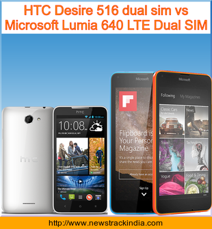 Main Features comparison of the devices HTC Desire 516 dual sim and Microsoft Lumia 640 LTE Dual SIM.
