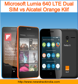 The mobile device Microsoft Lumia 640 LTE Dual SIM runs on Microsoft Windows Phone 8.1 with Lumia Denim. Whereas Alcatel Orange Klif runs on Firefox OS, v2.0.