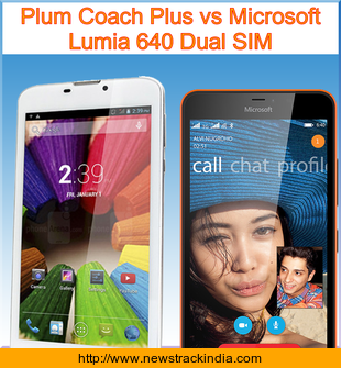 The mobile device Plum Coach Plus runs on Android OS, v4.2.2 (Jelly Bean). Whereas Microsoft Lumia 640 Dual SIM runs on Microsoft Windows Phone 8.1 with Lumia Denim.