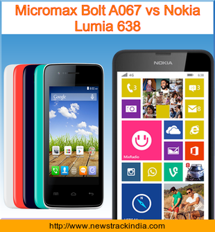 Check Micromax Bolt A067 vs Nokia Lumia 638 : Comparison of Features and Specification in detail..