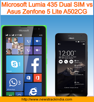 The mobile device Microsoft Lumia 435 Dual SIM runs on Microsoft Windows Phone 8.1, planned upgrade to Windows 10. Whereas Asus Zenfone 5 Lite A502CG runs on Android OS, v4.4.2 (KitKat).