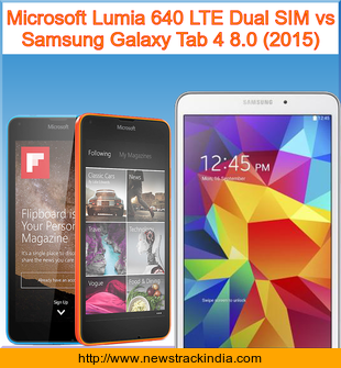 Main Features comparison of the devices Microsoft Lumia 640 LTE Dual SIM and Samsung Galaxy Tab 4 8.0 (2015).