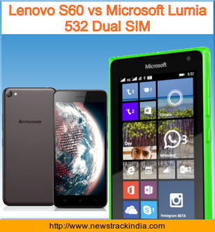 The mobile device Lenovo S60 runs on Android OS, v4.4 (KitKat). Whereas Microsoft Lumia 532 Dual SIM runs on Microsoft Windows Phone 8.1.