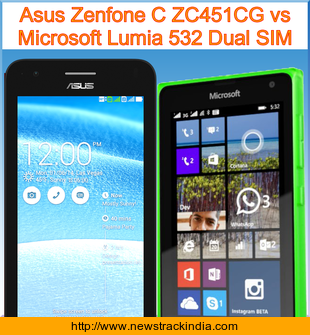 Main Features comparison of the devices Asus Zenfone C ZC451CG and Microsoft Lumia 532 Dual SIM.