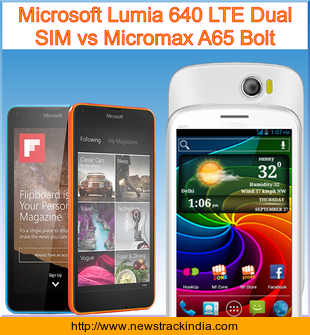 Main Features comparison of the devices Microsoft Lumia 640 LTE Dual SIM and Micromax A65 Bolt.