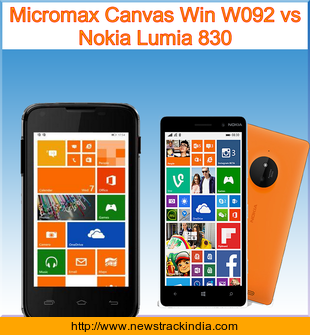 The mobile device Micromax Canvas Win W092 runs on Microsoft Windows Phone 8.1. Whereas Nokia Lumia 830 runs on Microsoft Windows Phone 8.1.