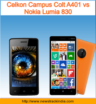 The mobile device Celkon Campus Colt A401 runs on Android OS, v4.4.2 (KitKat). Whereas Nokia Lumia 830 runs on Microsoft Windows Phone 8.1.