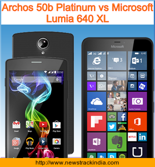 The mobile device Archos 50b Platinum runs on Android OS, v4.4.2 (KitKat). Whereas Microsoft Lumia 640 XL runs on Microsoft Windows Phone 8.1 with Lumia Denim.