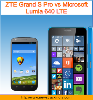 The mobile device ZTE Grand S Pro runs on Android OS, v4.3 (Jelly Bean). Whereas Microsoft Lumia 640 LTE runs on Microsoft Windows Phone 8.1 with Lumia Denim.