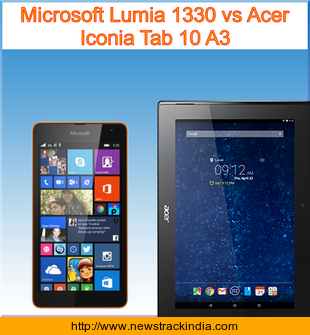 The mobile device Microsoft Lumia 1330 runs on Microsoft Windows Phone 8.1. Whereas Acer Iconia Tab 10 A3 runs on Android OS, v5.0 (Lollipop).