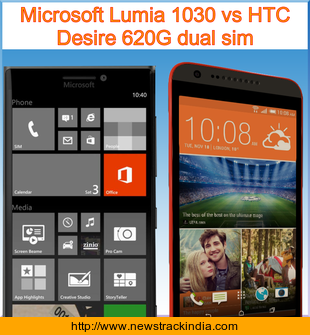 The mobile device Microsoft Lumia 1030 runs on Microsoft Windows 10. Whereas HTC Desire 620G dual sim runs on Android OS, v4.4.4 (KitKat).