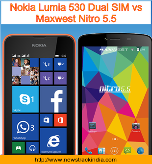 Nokia Lumia 530 Dual SIM is powered with Quad-core 1.2 GHz processor. Whereas Maxwest Nitro 5.5 comes with Dual-core 1.2 GHz Cortex-A7 processor.